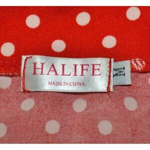 Halife Ladies M Red Polka Dot V-Neck Blouse Top Roll Tab Sleeve Fun Bold Retro