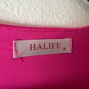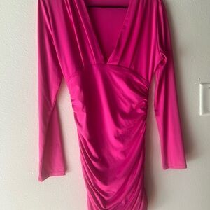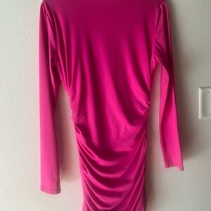 Vivid pink material with a smooth texture. Perfect for trendy outfits and nights out. Sized medium, never worn!
