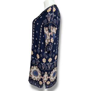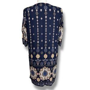 Halife Womens Midi Tunic Dress Geo Print Tasseled V Neck Coastal Navy Blue 2XL