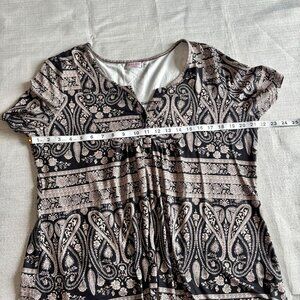 Halife Womens Short-Sleeve Paisley Print Boho Tunic Top Black & Beige Size L