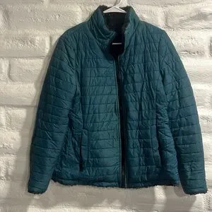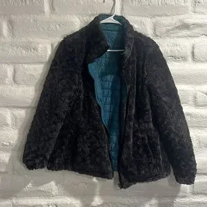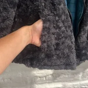 Faux fur lining on inside, reversible. Very good used condition, missing strap of zipper fully functional zipper.