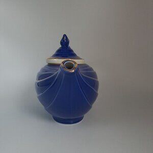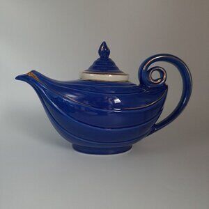 Hall Pottery Blue Gold Aladdin Lamp 6 Cup Teapot Tea Strainer MCM Genie-Inspired