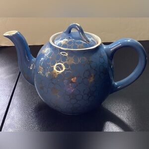Hall Teapot French Flower Cadet Blue Periwinkle Gold Trim Vintage 1950s