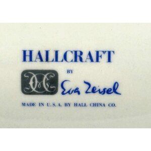 Hallcraft by Eva Zeisel Handpainted Oval Mulberry Serving Bowl. Measures 12 inches in length and 5.5 inches in width. Vintage condition no chips or cracks.