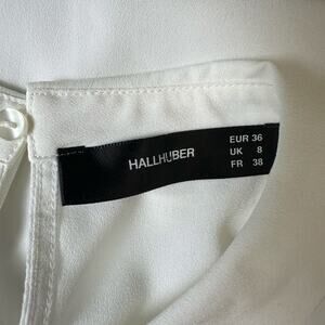 Hallhuber White Long Sleeved Peter Pan Collar Blouse Top Size EUR 36, US 6, Button at collar in back. Business, Minimalist, Neutral, office, Twee