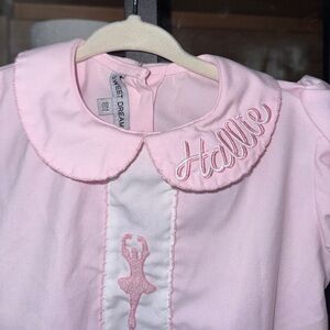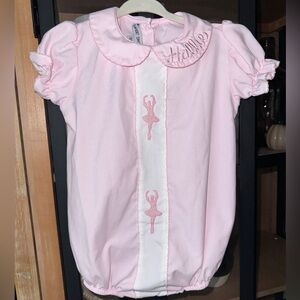 Hallie ballet bubble romper smock frenchknot ballerina collar monogram baby girl