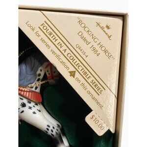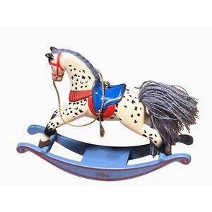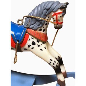 This Hallmark 1984 Rocking Horse Ornament features intricate details including a gold bridle and vibrant saddle. Crafted with care and attention to detail, it adds a touch of nostalgia to any collection. The decorative piece is perfect for those who appreciate vintage-inspired ornaments.
