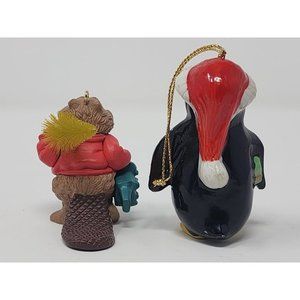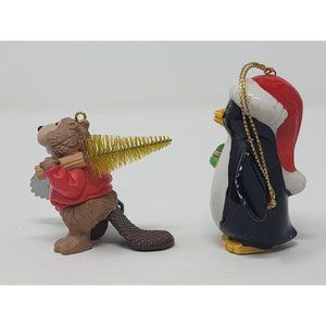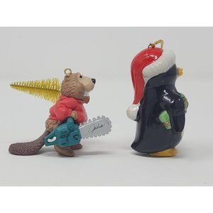 Hallmark 1990 Happy Woodcutter Christmas Ornament Beaver+Penguin Bonus Ornament
