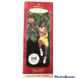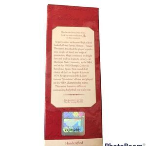Hallmark keepsake ornament. Magic Johnson hoop stars. Collector’s Series with exclusive Fleet Trading Card. Approximately 5” x 1”.