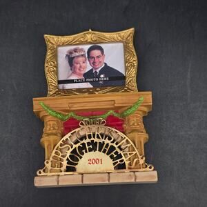 Hallmark 2001 Our First Christmas Ornament Fire Place Photo Frame
