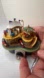 The train moves along the track, and circus animals pop up and down. The dial on the front allows the user to control the train's forward and reverse motion.