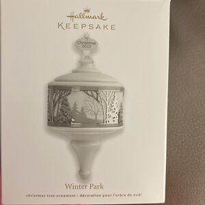 Hallmark Winter Park Keepsake Ornament white with silver Christmas trees.