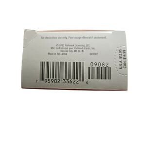 Hallmark Cookie Cutter Christmas Ornament 2013 2nd in Cookie Cutter Collection; Heart shaped. 2.5 inch wide, 2 inch tall. Snowmouse writing a letter with a candy cane pen. Fireplace and Xmas tree. Artist Nina Aube.