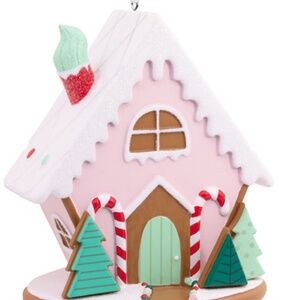 * Hallmark 2022 Pink Gingerbread House Glitter Christmas Ornament