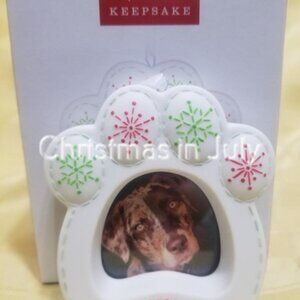 Hallmark "Happy Dog" photo holder Ornament. 2024. Approx H: 4". Ornament in good condition. Box has light wear. Smoke Free.