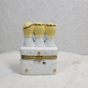 Hallmark 3 Angels Figurine Trinket Box Ceramic Hinged Porcelain White Gold