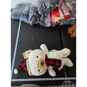 holiday festive christmas xmas december present gift new plushie stuffie white santa hat scarf buffalo plaid cuddle cuddly toy security polar arctic teddy