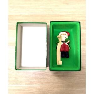 Vintage stocking hanger. Made in 1984. Comes in original packaging. Missing jingle bell on top of Santa hat but still in great condition.