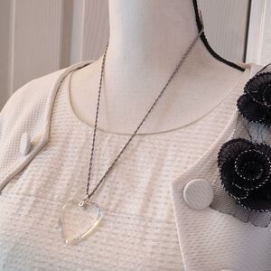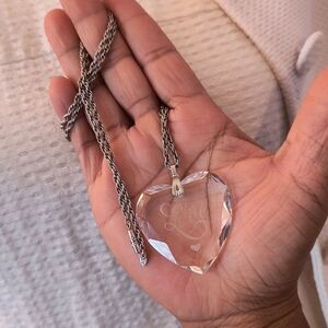 Hallmark Cards Inc Love Heart Glass Pendant Silver Tone Necklace Ship with Box