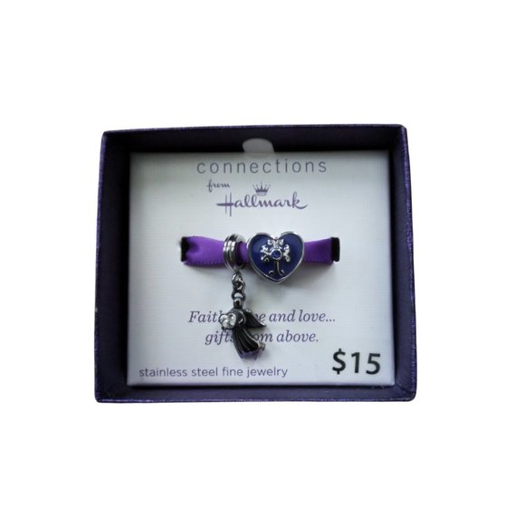 Hallmark Charms - Stainless Steel Crystal Angel Bead Cross w/ Crystal Set - NEW