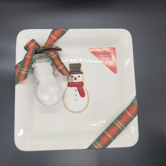 Hallmark Christmas Cookie Plate Snowman with Cookie Cutter & Recipe On Back NWTS