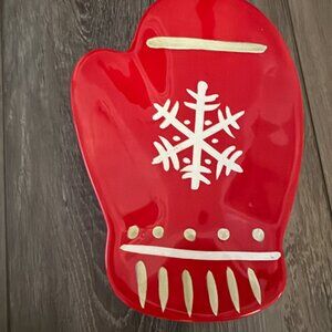 Hallmark red and white ceramic Christmas mitten serving dishes.