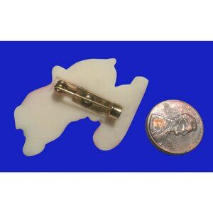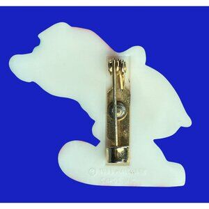This vintage skiing polar bear brooch adds a festive touch to holiday outfits. Lightweight plastic design with vibrant colors enhances seasonal charm.