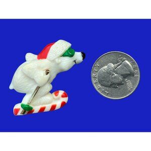 Hallmark Christmas Pin White Polar Bear Skiing Vintage1983
