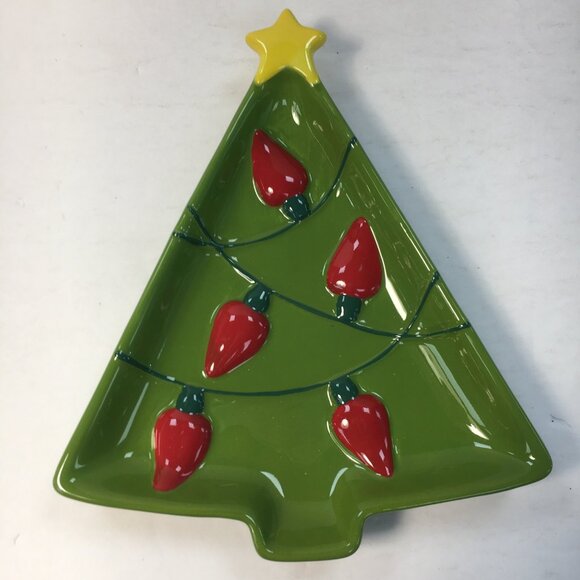 Hallmark Christmas Tree Ceramic Plate Festive Lights Design Holiday Serving Dish
