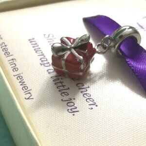 This retired Hallmark Connections gift box bead charm is a highly sought-after piece from the discontinued Jacmel jewelry line. It is a beautiful stainless steel charm perfect for a charm bracelet or charm necklace