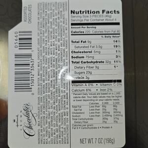 This is a sealed in plastic Hallmark Crown Chocolatier Chocolate Tin issued from 1995. It is still sealed in plastic. It is a gold tin with a image of a painting of a young girl. It is 8 inches long, 6 inches wide and 2 inches tall. It is still filled with chocolate and has never been opened.