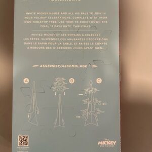 Disney Mickey and Friends countdown calendar with 12 ornaments. Features a colorful paper tree display.