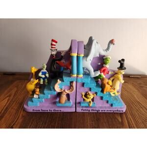 Dr. Seuss The Ends Sculpted Bookends a collectable item from the year 2000 by Robert Chad for Hallmark. They feature various characters from Dr Seuss including The Cat in the Hat Horton the Elephant and The Grinch.