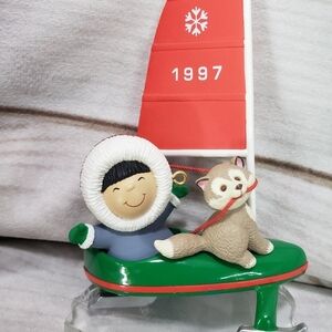 Hallmark Frosty Friends 1997 Ornament Eskimo Husky Dog On Iceboat With Box