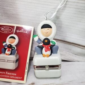 Hallmark Frosty Friends 2002 Ornament Trinket Box Eskimo Penguin With Box