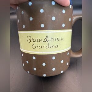 Hallmark “Grand-tastic Grandma!” Brown And Yellow Blue Polka Dots Coffee Mug