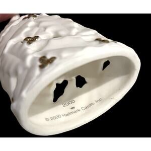 • Hallmark 2000 Holly Berry Bell Ornament In White Porcelain & Gold