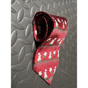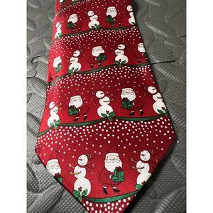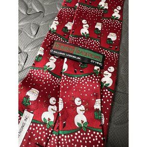 Hallmark Holiday Traditions 100% silk Neck Tie Christmas Snowman Red Santa