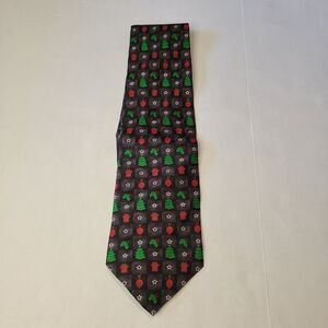 Hallmark Holiday Traditions Christmas Tie Small Square Stars Trees Ornaments Gifts Holly All Silk, Excellent Condition. Comes from a smoke free home.