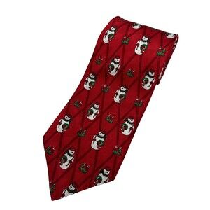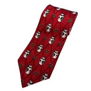 Hallmark Holiday Traditions Red Snowman Silk Tie L 57.5" W 4"