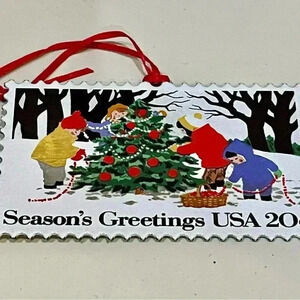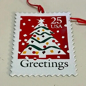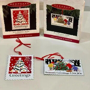 Hallmark Holiday vintage Ornaments U.S Christmas stamps, with display stand