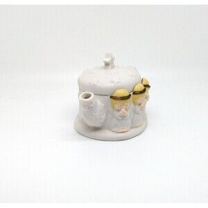 Hallmark Houston Harvest Teapot Praying Angels Stars Lid Ceramic White 3.5" VTG