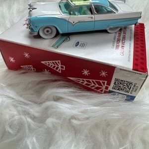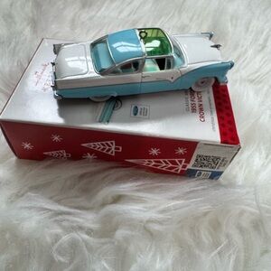 Charming Hallmark Keepsake ornament of a 1955 Ford Fairlane Crown Victoria Skyliner..Features a classic blue and white design.