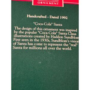 Bring a touch of nostalgia to your holiday tree with this vintage 1992 Hallmark Keepsake ornament, featuring the classic Coca-Cola Santa Claus. Inspired by Haddon Sundblom’s iconic 1930s illustrations that shaped the modern image of Santa, this collectible is a true piece of Christmas history.
