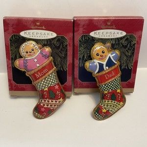Hallmark Keepsake 1999 Ornament Mom Dad Stocking Gingerbread Set Christmas