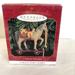 This is a very nice, Hallmark Keepsake Ornament - 1999 "A Pony For Christmas." Second in the Pony for Christmas Collector's Series. Sculpted by Linda Sickman Made in China.