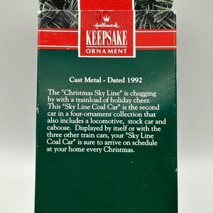 This Hallmark Keepsake Christmas Sky Line Coal Car 1992 ornament is perfect for train enthusiasts and collectors. The blue 2.75 inch ornament comes in original box for safekeeping. Comes from a smoke free home.