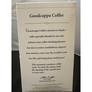 The product is a Hallmark Keepsake Christmas Tree Ornament from 2006 in its original box. The ornament features the theme of "Goodcuppa Coffee" and is part of the Holiday & Seasonal collectibles. This charming ornament is perfect for adding a touch of festive cheer to any Christmas tree, and it is a nostalgic addition to any holiday decor collection.