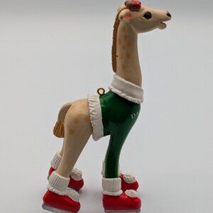 Hallmark Keepsake Daughter ornament from 1993, featuring a flexible giraffe with bendable neck and legs wearing ice skates. This pre-owned ornament is in excellent condition, and the original box shows wear due to age and storage.