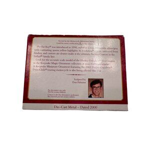 This Hallmark Keepsake ornament celebrates Harley Davidson's iconic FAT BOY motorcycle. Perfect for collectors and motorcycle enthusiasts, it adds a touch of nostalgia to your Christmas decor.